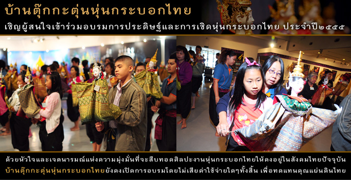 บ้านตุ๊กกะตุ่นหุ่นกระบอกขอเชิญชวนผู้ที่สนใจและมีใจรักษ์ในงานหุ่นกระบอกไทย